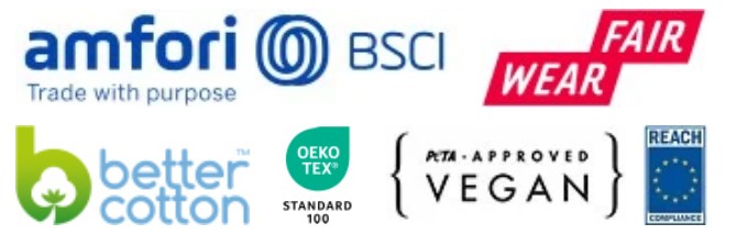 100% gekämmte, ringgesponnene Baumwolle. Weicher Griff. Waschbar bei 60 Grad. Rundhalsausschnitt mit Baumwoll-Rippstrick. Durchgehendes Nackenband von Schulter zu Schulter. Amfori BSCI, Better Cotton und Fair Labor zertifiziert.