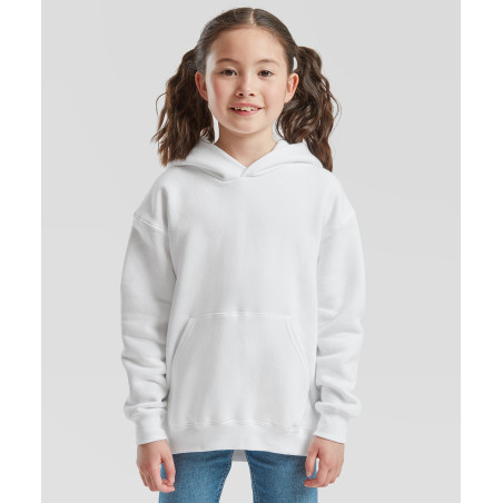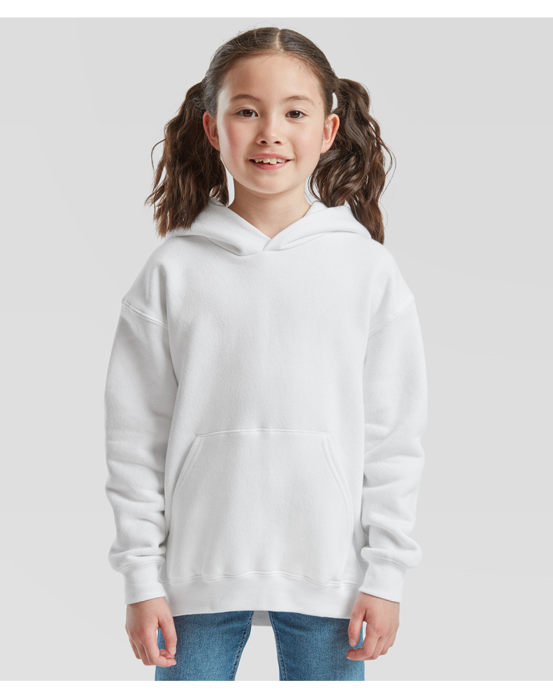 Gleichfarbiges Jersey Nackenband. Doppelte kapuze ohne Kordelzug, entsprechend der europäischen Gesetzgebung für Kinderbekleidung. Beuteltasche vorne. Taillien- und Armbündchen aus Baumwolle/Elasthan für Formbeständigkeit. WRAP zertifiziert.